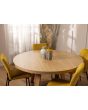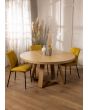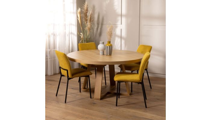 משטח השולחן ורגליו עשויים עץ אלון מלא בשילוב פלטת פורניר אלון בגוון טבעי.